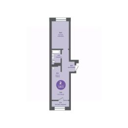 2-комнатная квартира на 12 этаже в 16-этажной секции прогресс-кварталов "Перемены".