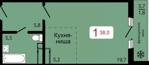 Продаётся 1-комнатная квартира в строящемся доме (Дом 2), срок сдачи: IV-кв. 2026, общей площадью 38 кв.м., на 3 этаже.