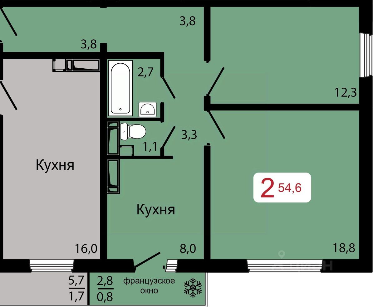 Продаётся 2-комнатная квартира в строящемся доме (Дом 5.2), срок сдачи: IV-кв. 2026, общей площадью 54.6 кв.м., на 14 этаже.
