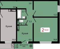 Продаётся 2-комнатная квартира в строящемся доме (Дом 2), срок сдачи: IV-кв. 2026, общей площадью 54.6 кв.м., на 15 этаже.