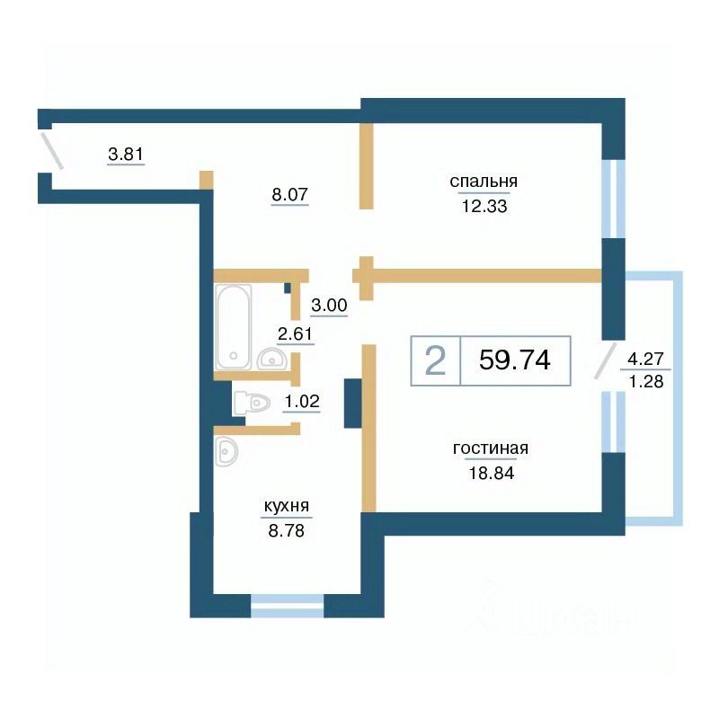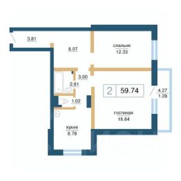 Продаётся 2-комнатная квартира в строящемся доме (Дом 13А), срок сдачи: II-кв. 2026, общей площадью 59.74 кв.м., на 5 этаже. Расположение, транспортная доступность