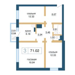Общая площадь71,02 м²