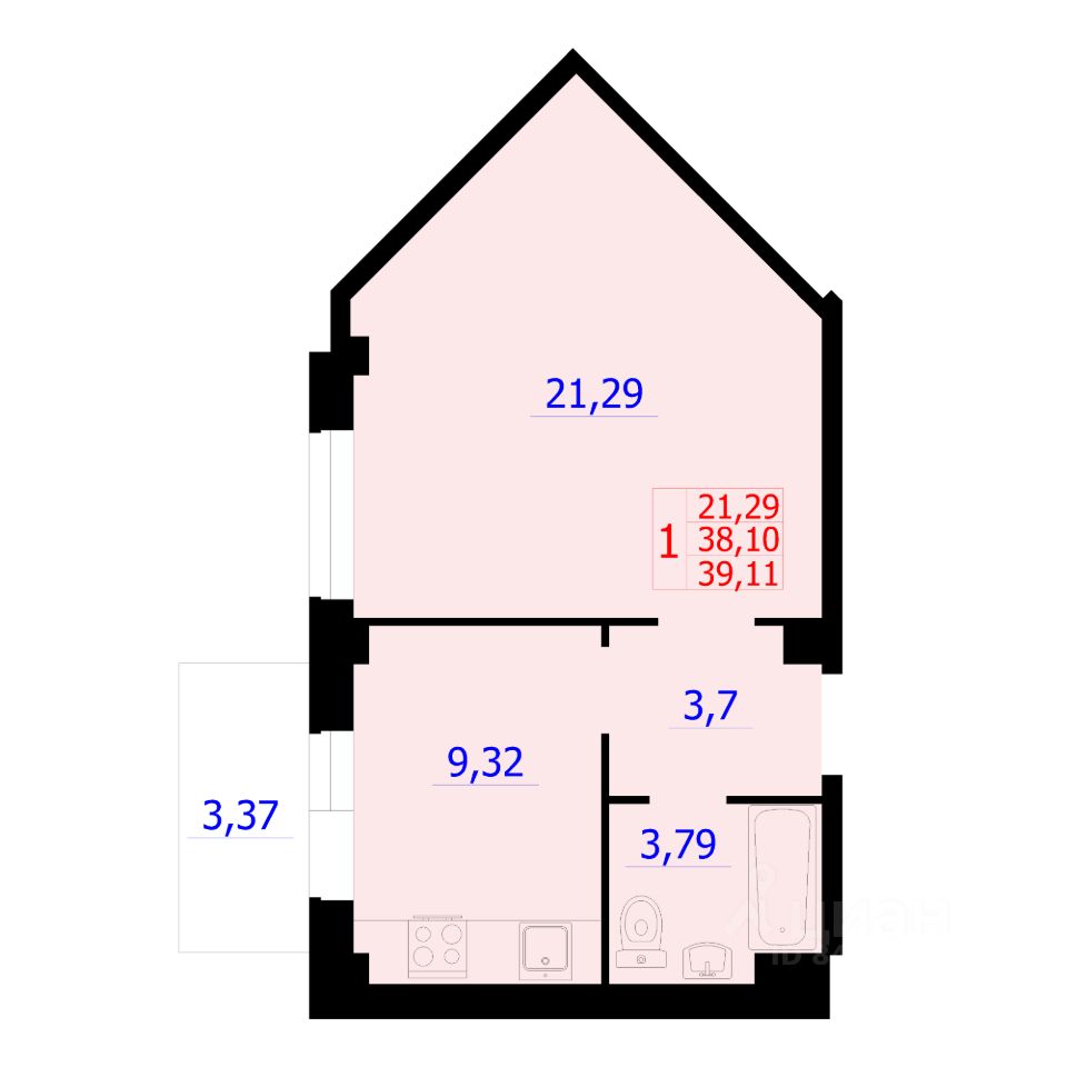 Общая площадь38,85 м²