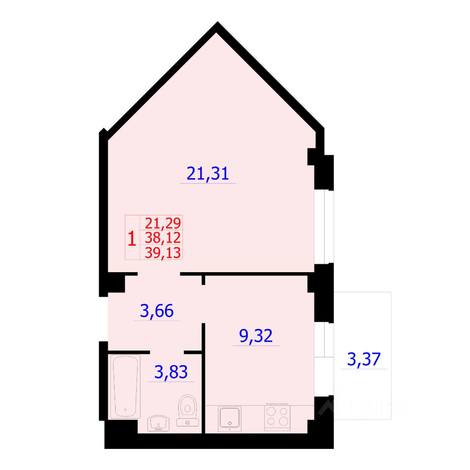Общая площадь38,87 м²