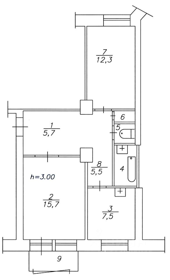 Высокие потолки (3 метра) создают ощущение простора и позволяют максимально эффективно использовать пространство.