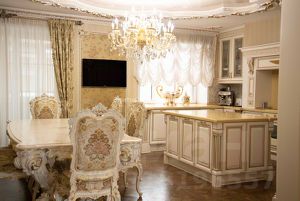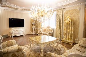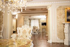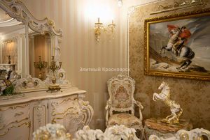 Итальянская мебель с безупречными линиями, хрустальные люсты .Ручная роспись стен художниками, работающими над Храмами.