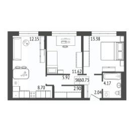 Продаётся 3-комнатная квартира в строящемся доме (Премьер парк), срок сдачи: III-кв. 2029, общей площадью 60.75 кв.м., на 13 этаже. Жилой комплекс "Премьер Парк" расположен в живописном микрорайоне Тихие Зори города Красноярска, неподалеку от реки Енисей и знаменитого железнодорожного моста, удостоенного гран-при наравне с Эйфелевой башней. Вблизи комплекса находятся такие достопримечательности, как фан-парк "Бобровый Лог", заповедник "Столбы" и река Базаиха с её живописной поймой. Чтобы провести время на природе понадобиться потратить всего несколько минут на дорогу.