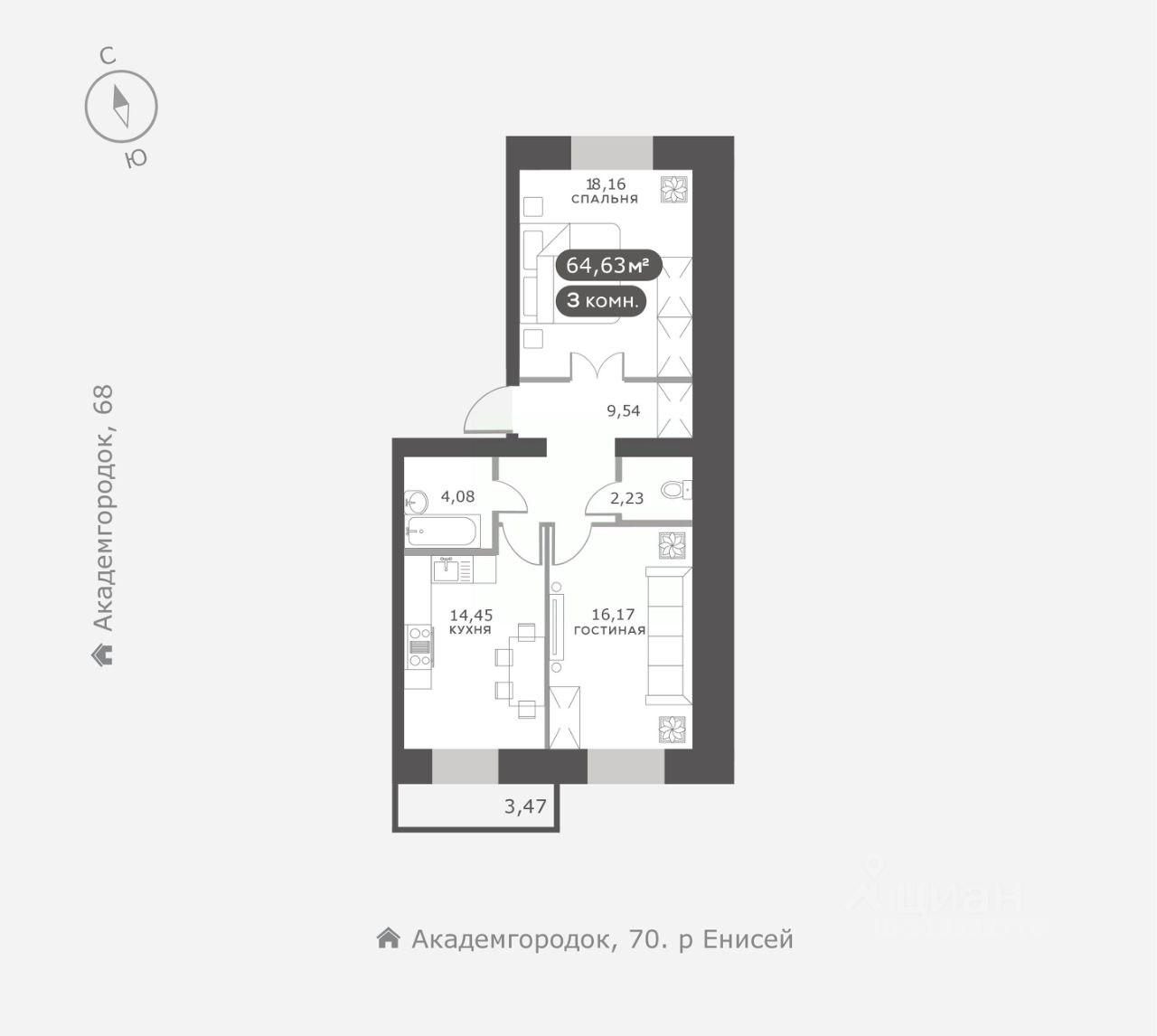 Академгородок, Дом 3, квартира 25.