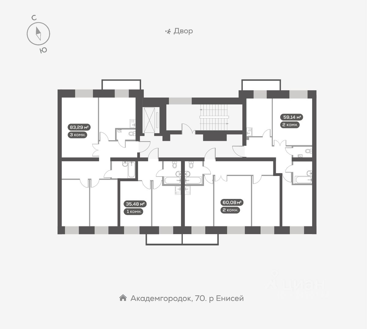 Новый Академгородок - сити-район из восьми кирпичных домов-кварталов на берегу Енисея.