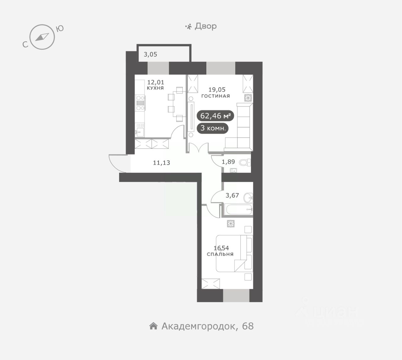 Академгородок, Дом 3, квартира 89.