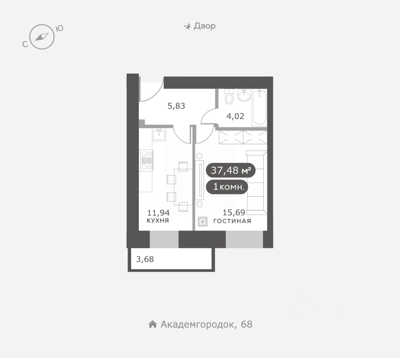 Академгородок, Дом 3, квартира 60.