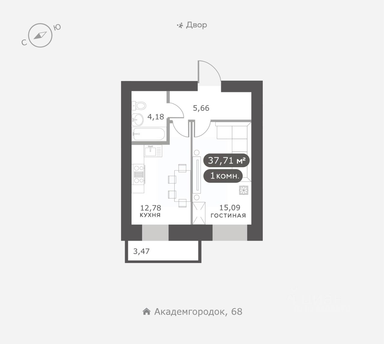 Академгородок, Дом 3, квартира 56.