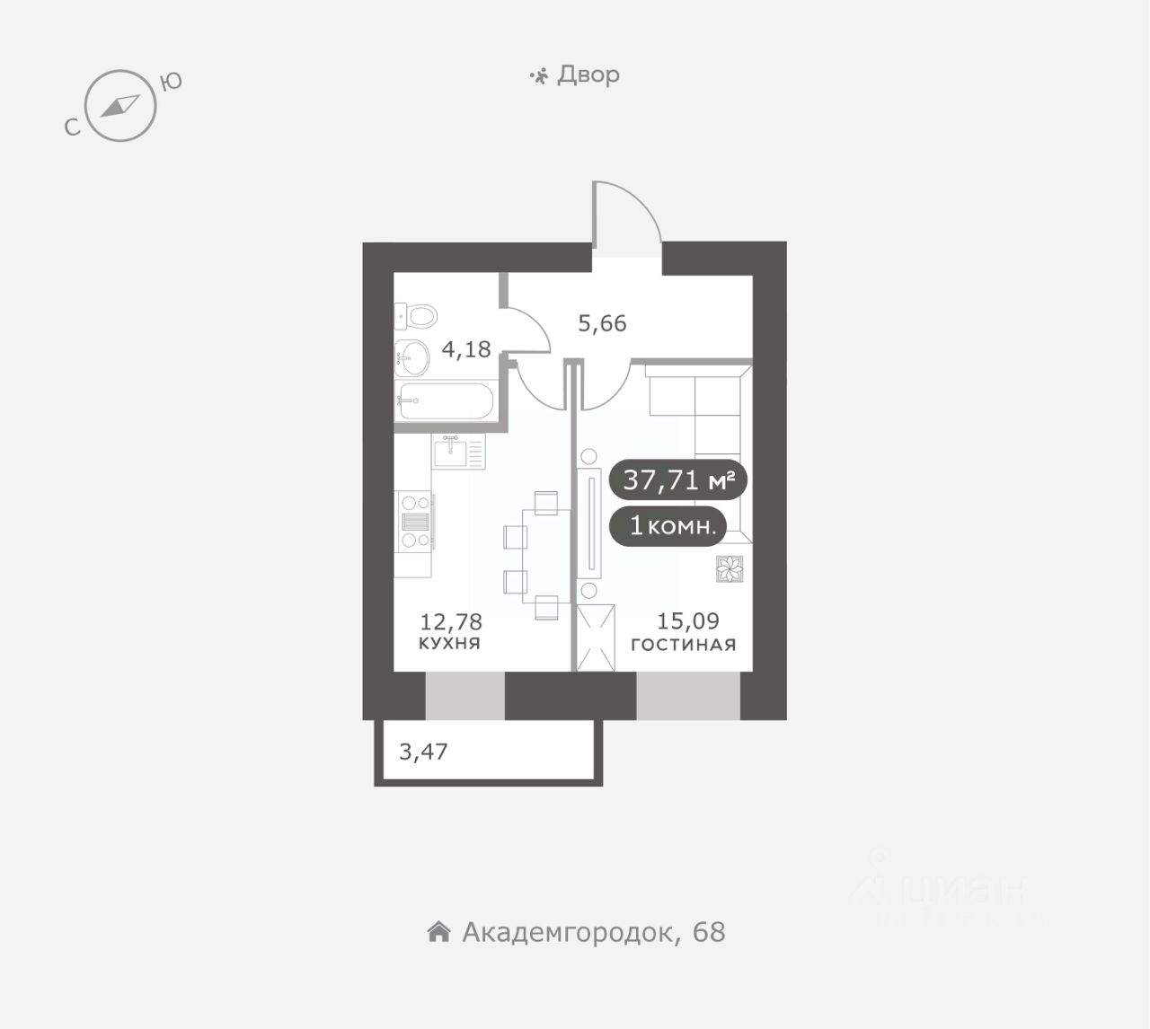 Академгородок, Дом 3, квартира 76.