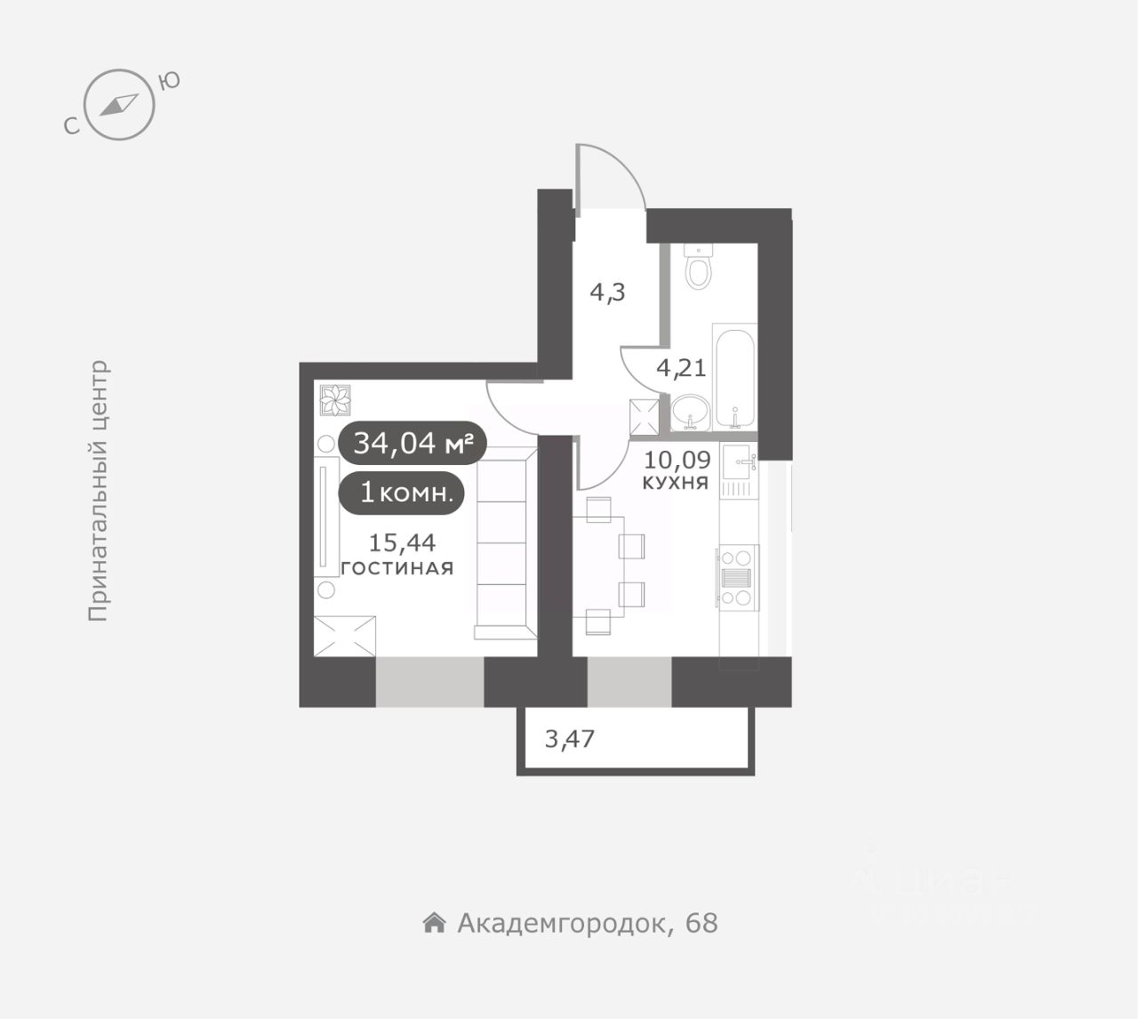 Академгородок, Дом 3, квартира 116.