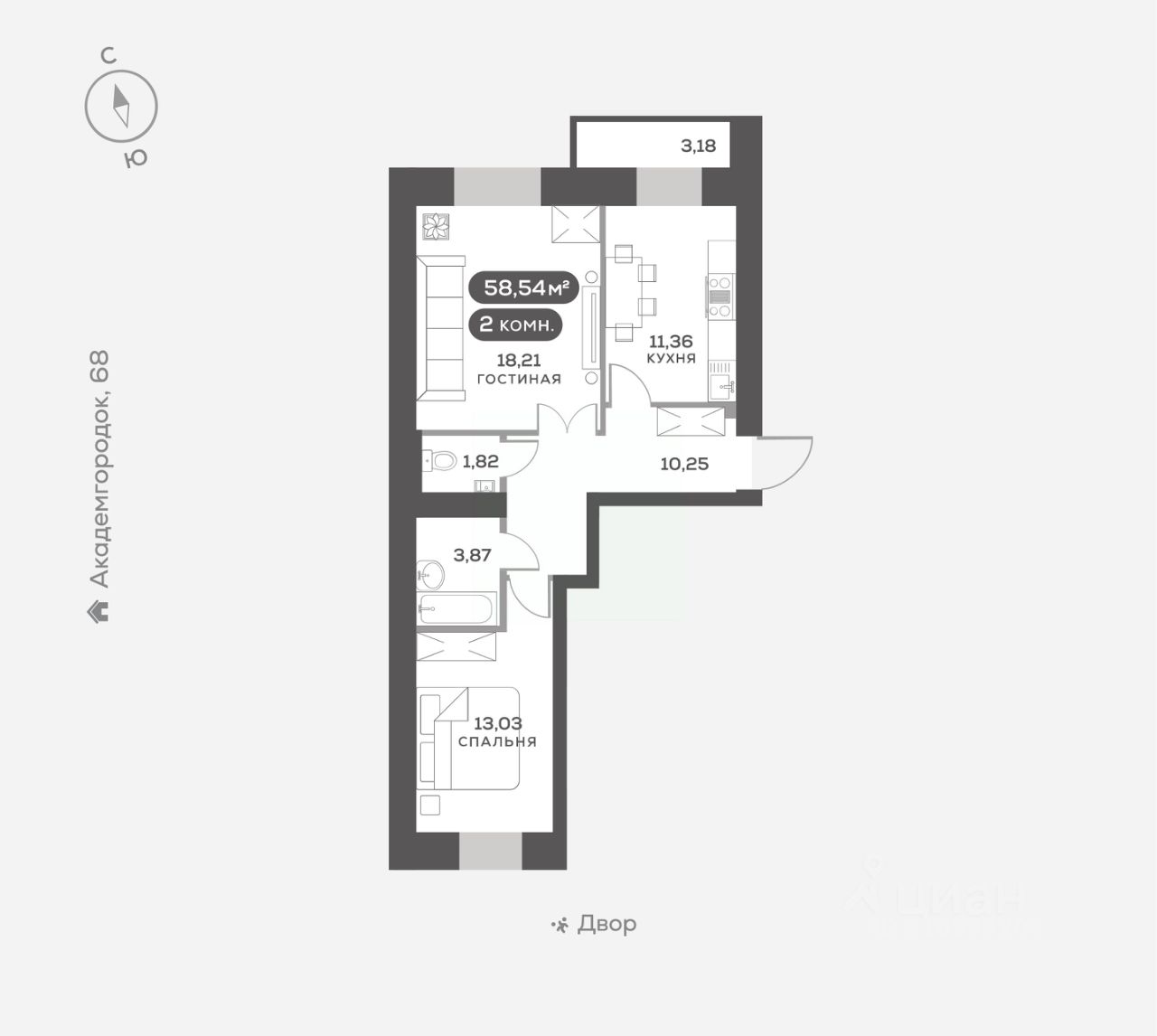 Академгородок, Дом 3, квартира 188.