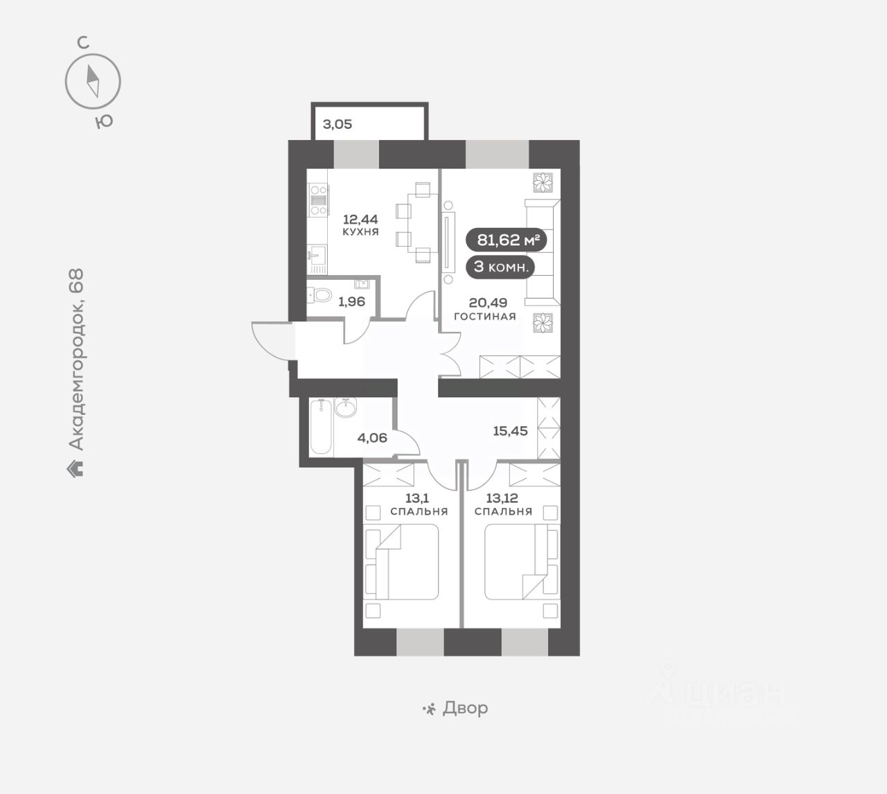 Академгородок, Дом 3, квартира 189.