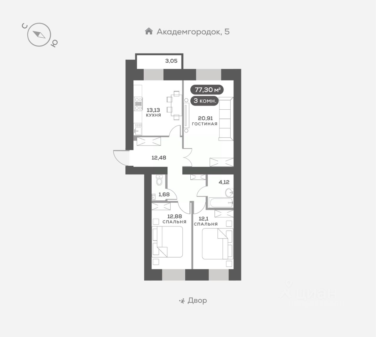 Академгородок, Дом 3, квартира 288.