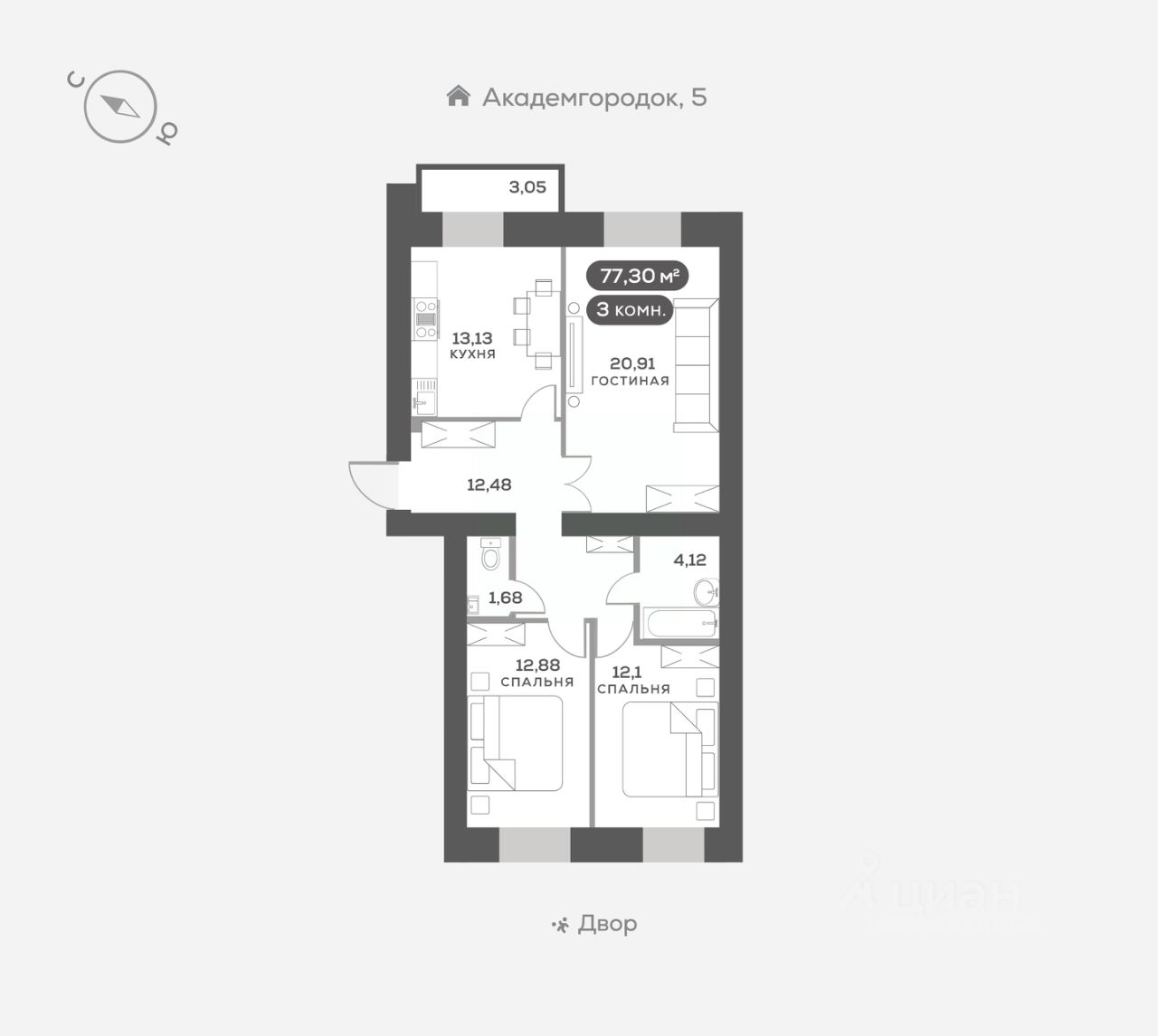 Академгородок, Дом 3, квартира 297.