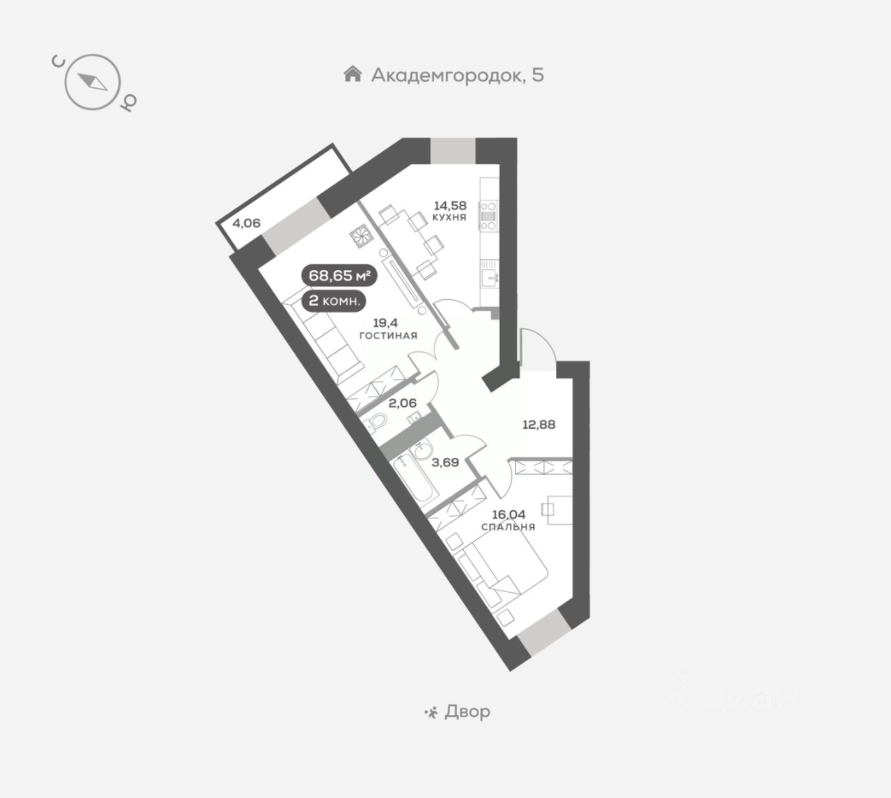 Академгородок, Дом 3, квартира 308.
