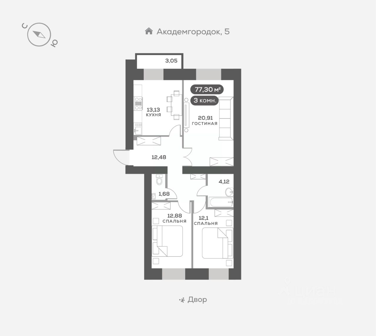 Академгородок, Дом 3, квартира 291.