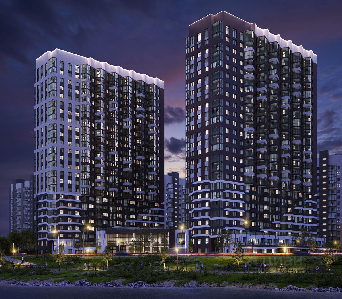 Большая часть квартир в жилом комплексе видовые, реку и панораму города видно не только с верхних этажей.