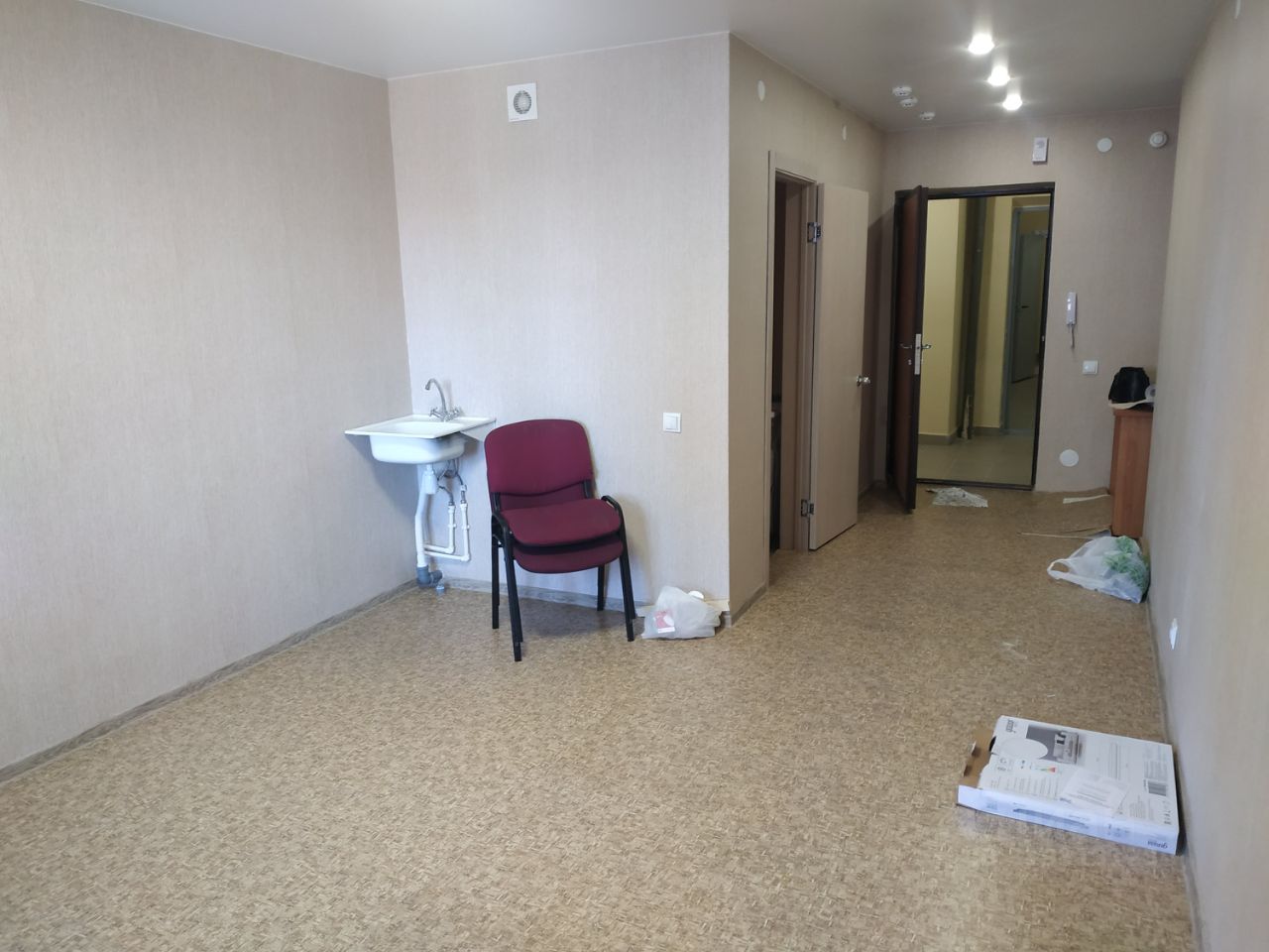 Продаётся уютная студия в хорошем районе, расположенная рядом с соседними квартирами стандартного типа. Железная дверь на этаже обеспечивает дополнительную безопасность. Рядом находятся школа, разнообразные магазины и удобная транспортная доступность благодаря близости железнодорожной платформы Мясокомбинат. Квартира расположена на 14-м этаже.