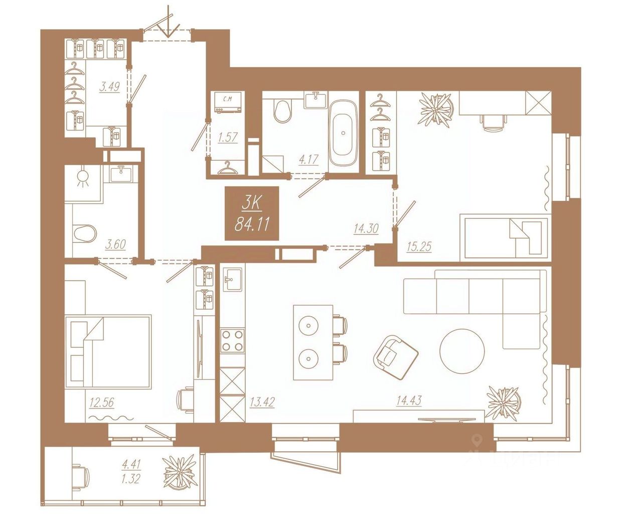 Продаётся 3-комнатная квартира в строящемся доме (Дом 2), срок сдачи: II-кв. 2028, общей площадью 84.11 кв.м., на 2 этаже. Новый жилой комплекс "АйвазовSKY" от группы компаний "Ментал-Плюс" расположен по адресу: г. Красноярск, по ул. 3-я Краснодарская.