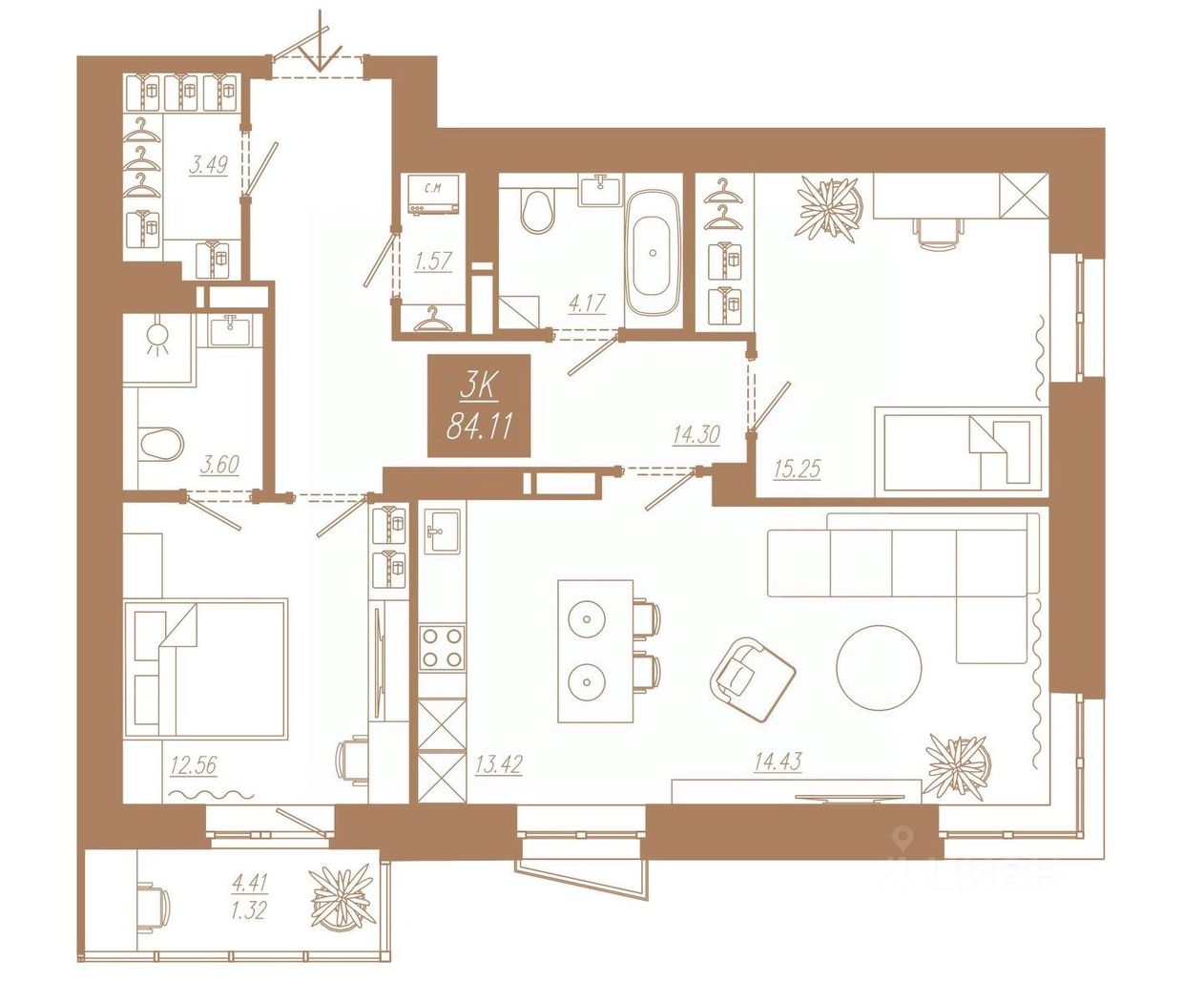 Продаётся 3-комнатная квартира в строящемся доме (Дом 2), срок сдачи: II-кв. 2028, общей площадью 84.11 кв.м., на 21 этаже. Новый жилой комплекс "АйвазовSKY" от группы компаний "Ментал-Плюс" расположен по адресу: г. Красноярск, по ул. 3-я Краснодарская.
