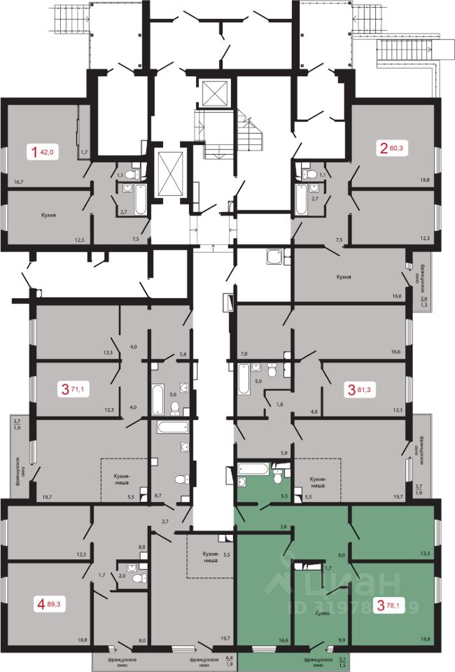 Продаётся 3-комнатная квартира в строящемся доме (Дом 3 строение 2), срок сдачи: II-кв. 2026, общей площадью 78.1 кв.м., на 12 этаже.