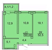 Общая площадь52,1 м²