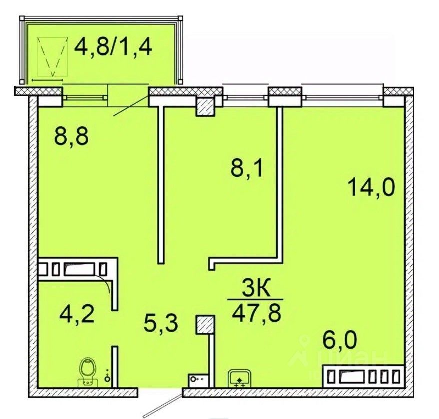 Общая площадь47,4 м²
