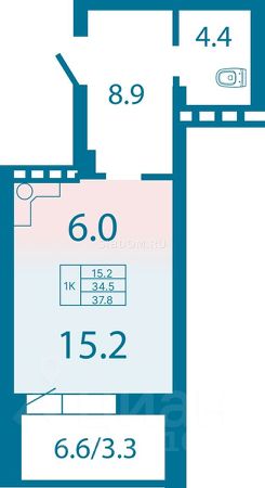 Общая площадь квартиры составляет 34 кв. м, из которых 22 кв. м — жилая площадь, 6 кв. м — кухня. В квартире есть балкон, где можно обустроить уютное место для отдыха. Совмещённый санузел обеспечивает функциональность и удобство использования пространства.