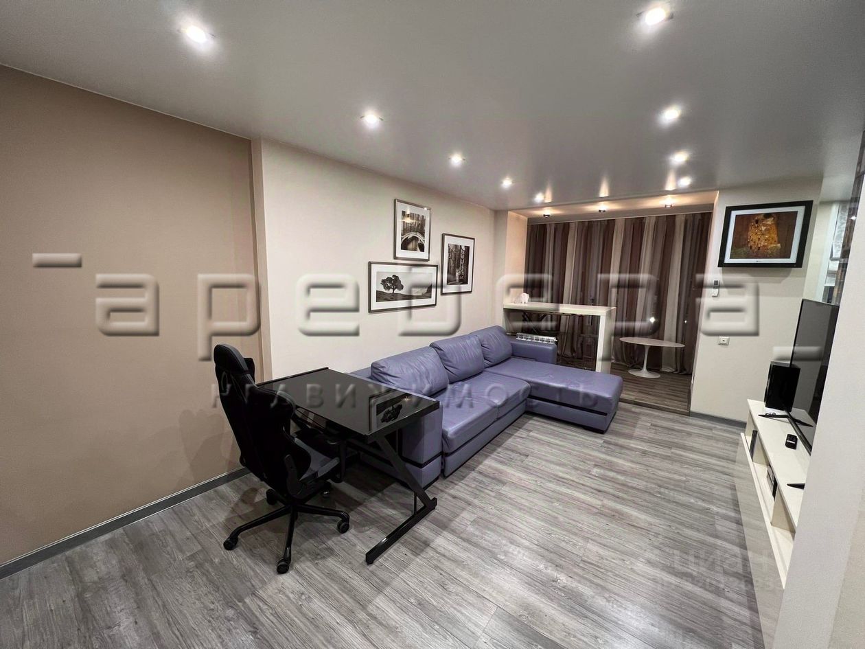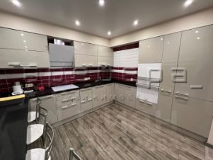 Кухонный гарнитур очень большой и вместительный, со всей необходимой бытовой техникой. В зале стоит удобный диван. Встроенные шкафы достаточно вместительные.