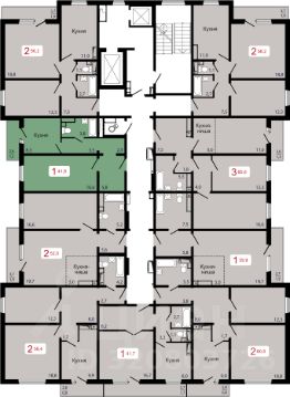 Продаётся 1-комнатная квартира в строящемся доме (Дом 7 строение 5), срок сдачи: II-кв. 2027, общей площадью 41.8 кв.м., на 11 этаже.