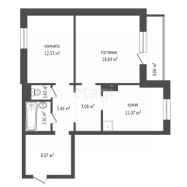 Пpoдaм просторную 2-комнатную квартиру в новом микpоpaйoнe "Cолнечный".