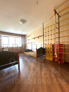 Просторная детская оборудована спортивным тренажером: шведской стенкой - турник с канатом и кольцами, полностью меблирована кроватями, шкафами, системой хранения и полками.