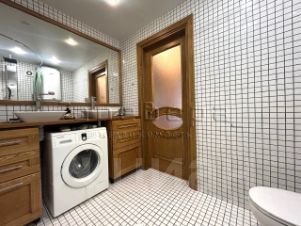 Ванная комната с двумя раковинами и большим зеркалом отделана мозаикой и массивом дуба, столешница - массив лиственницы. Стиральная машина и бойлер водонагреватель на 80л.