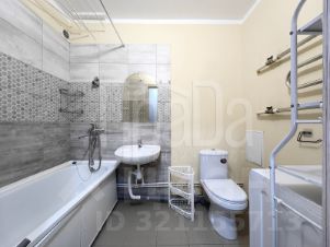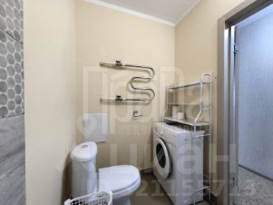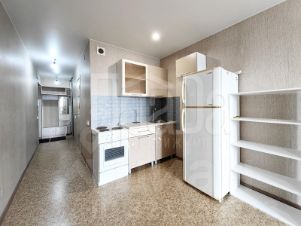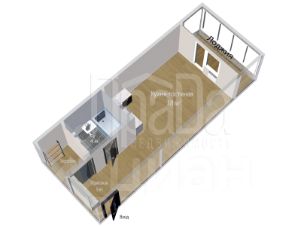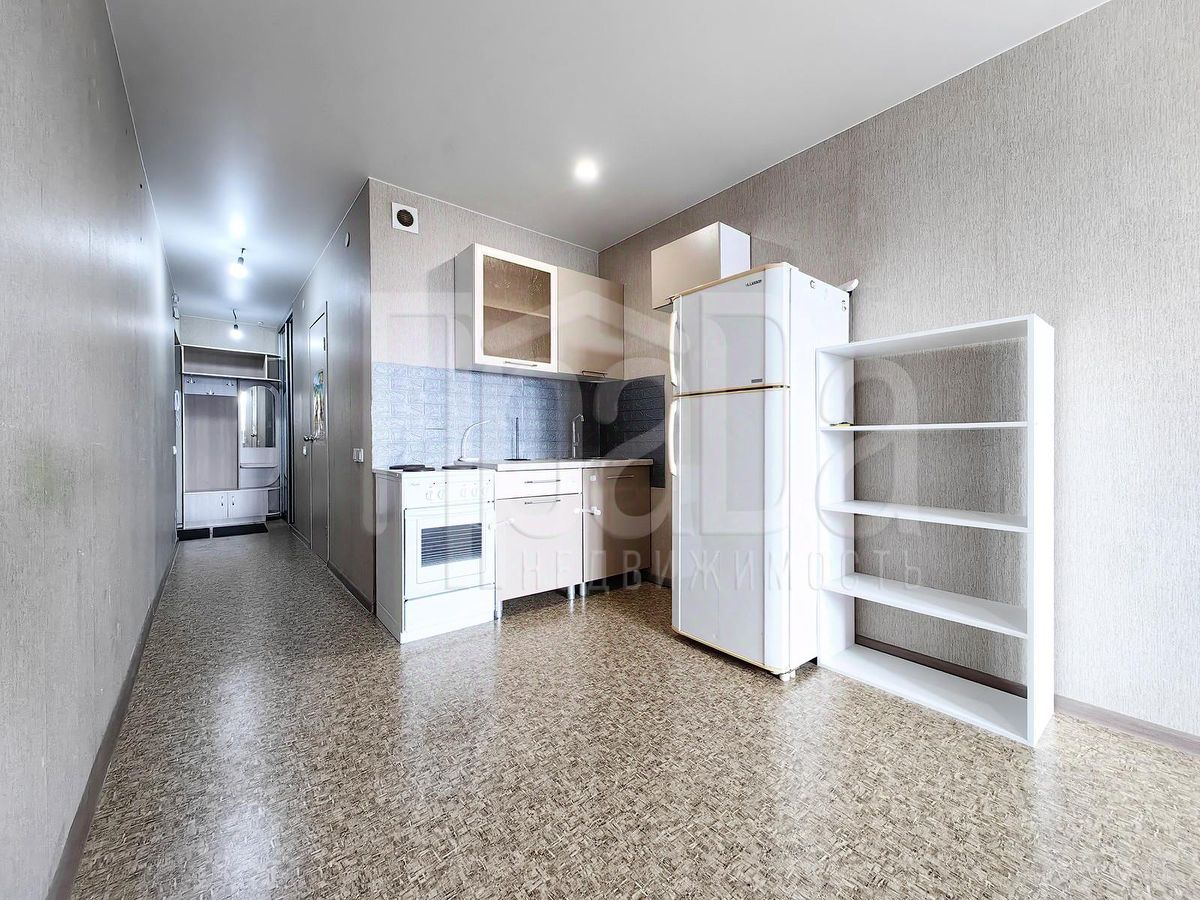 Планировка: прихожая, гардеробная, комната, совмещенная с кухонной зоной и выходом на остекленный балкон, большой совмещенный санузел.