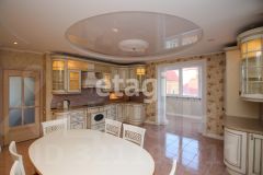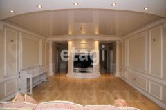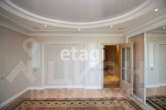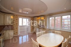 Общий метраж квартиры 117.4м2., кухня 24 м2, квадратные спальни 18/20 м2, гостиная 32м2. Улучшена планировка за счет объединения кухни с балконом (утеплен), зонирование гостиной. Полы выложены плиткой Versace и установлена система "тёплый пол". Большая кухня-столовая оснащена дорогой итальянской мебелью и встроенной бытовой техникой — холодильник, посудомоечная машина, плита, духовой шкаф. За счет объединения кухни с балконом добавилась дополнительная Лаунж зона. В квартире установлена приточно-вытяжная вентиляция с фильтрацией воздуха, сигнализация. В ванных комнатах итальянский кафель, установлена европейская сантехника, душевая кабина, ванна с гидромассажем. В просторных спальнях есть встроенные шкафы, на полу качественный ламинат. Из главной спальни выход на большой застеклённый балкон, отделанный деревом. Дизайн квартиры выдержан во всех комнатах, общая цветовая гамма в пастельных и золотых оттенках.
