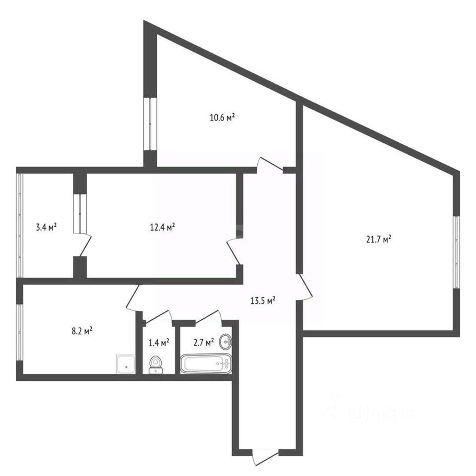 Продаётся просторная 3к квартира с необычной планировкой.