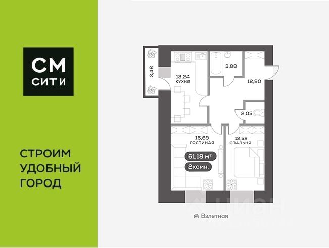 61,18 м²