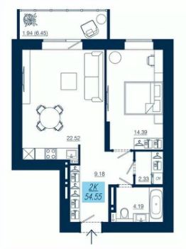 Продаётся 2-комнатная квартира в строящемся доме (Дом 4), срок сдачи: IV-кв. 2025, общей площадью 54.55 кв.м., на 19 этаже. Новый жилой комплекс "Уютные дома на Взлётке" от Специализированного застройщика ООО "Уютный дом 2014" расположен по адресу: г. Красноярск, по ул. Аэровокзальная.