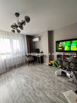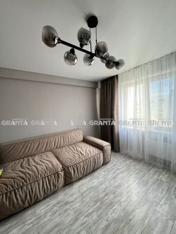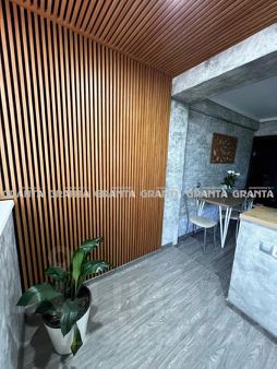 В квартире заливные полы, положен ламинат, в ванной и кухне антивандальный кварц-венил, на кухне на стенах декоративная штукатурка с элементами деревянной рейки, площадь кухни увеличена за счёт большой утеплённый лоджии с тёплыми электро полами и качественными стеклопакетами. В гостиной свежий теневой натяжной потолок с подсветкой, в спальне ремонт делали полгода назад, актуальный теневой потолок с подсветкой над гардиной.