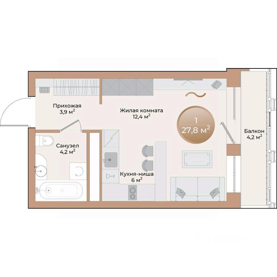 Общая площадь27,8 м²