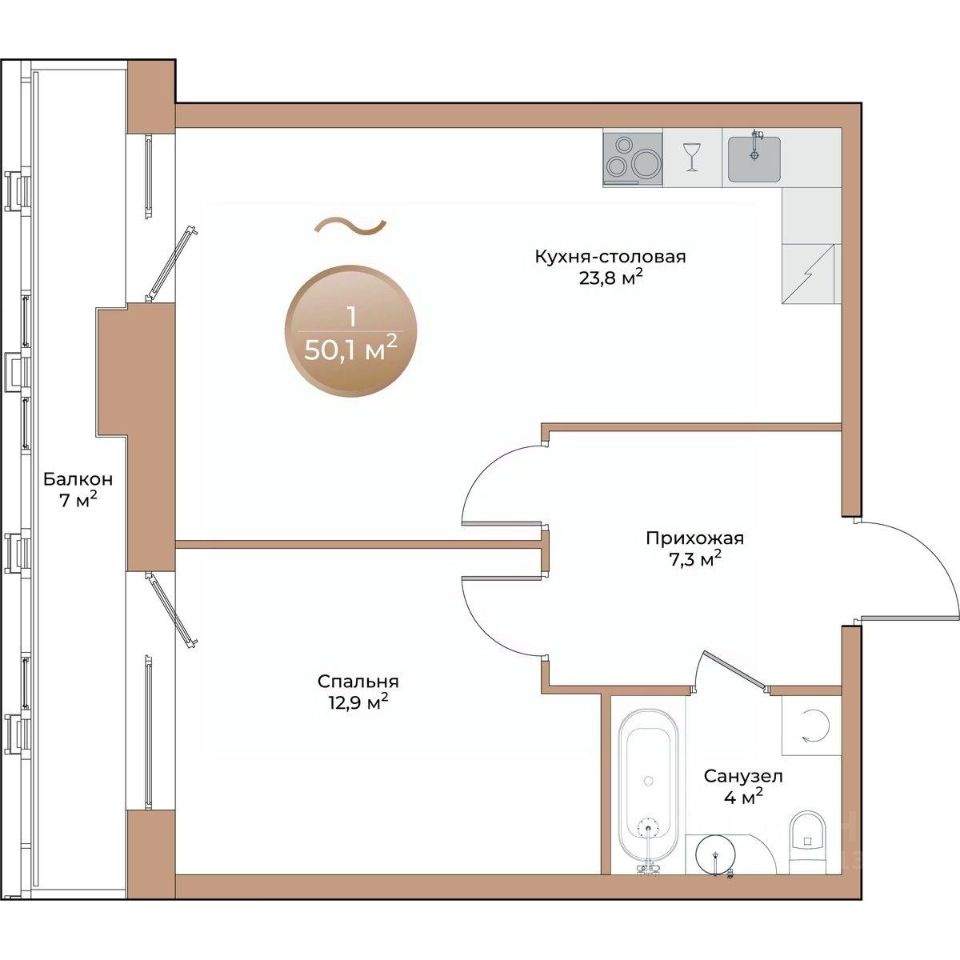 Общая площадь50,1 м²
