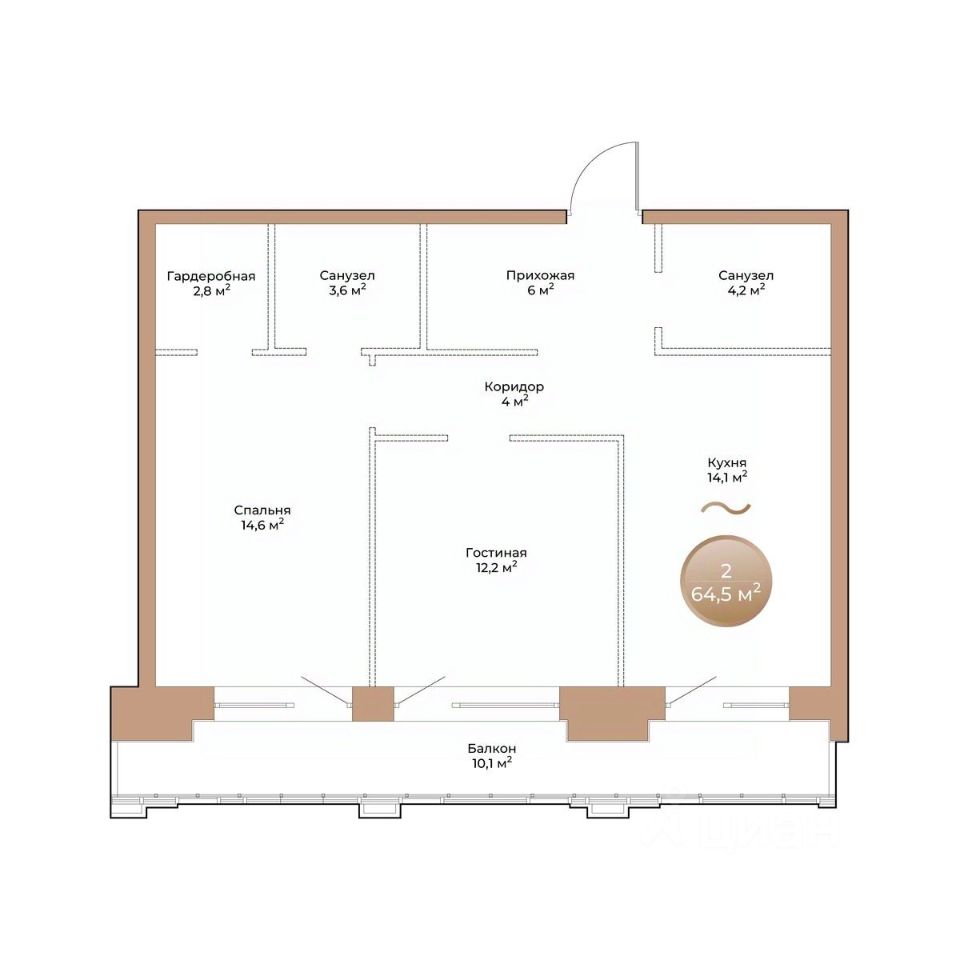 Общая площадь64,5 м²