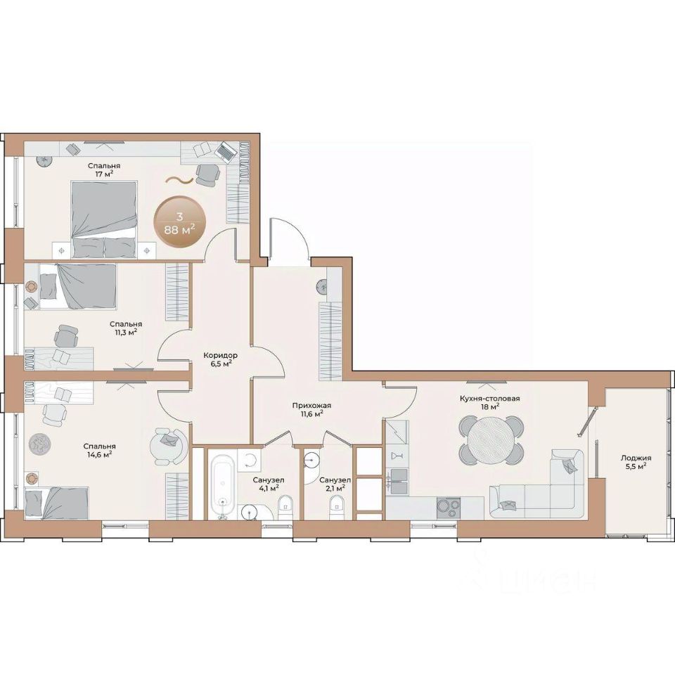 Общая площадь88 м²