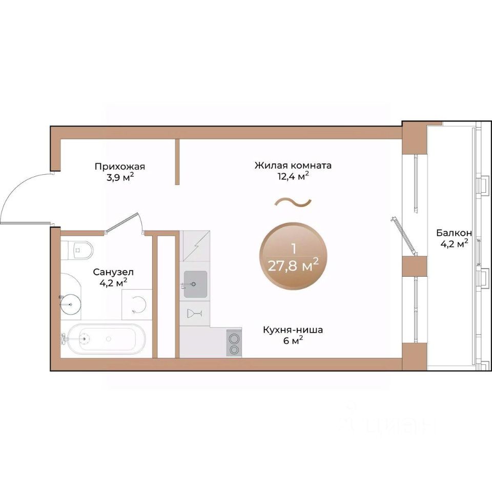 Общая площадь27,8 м²