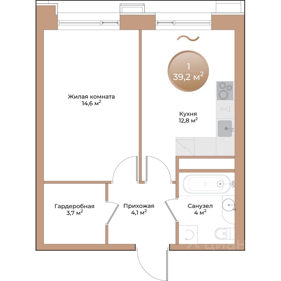 Общая площадь39,2 м²