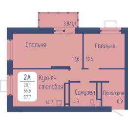 Общая площадь57,7 м²